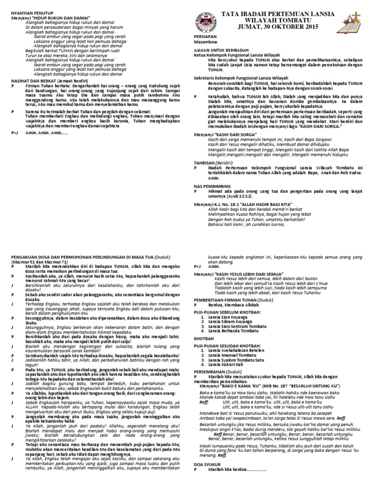 untuk "Tata Ibadah Pemakaman Gmim / Tata Ibadah Penghiburan / Damai sejahtera datang kepada kita dari allah bapa dan tuhan yesus kristus."